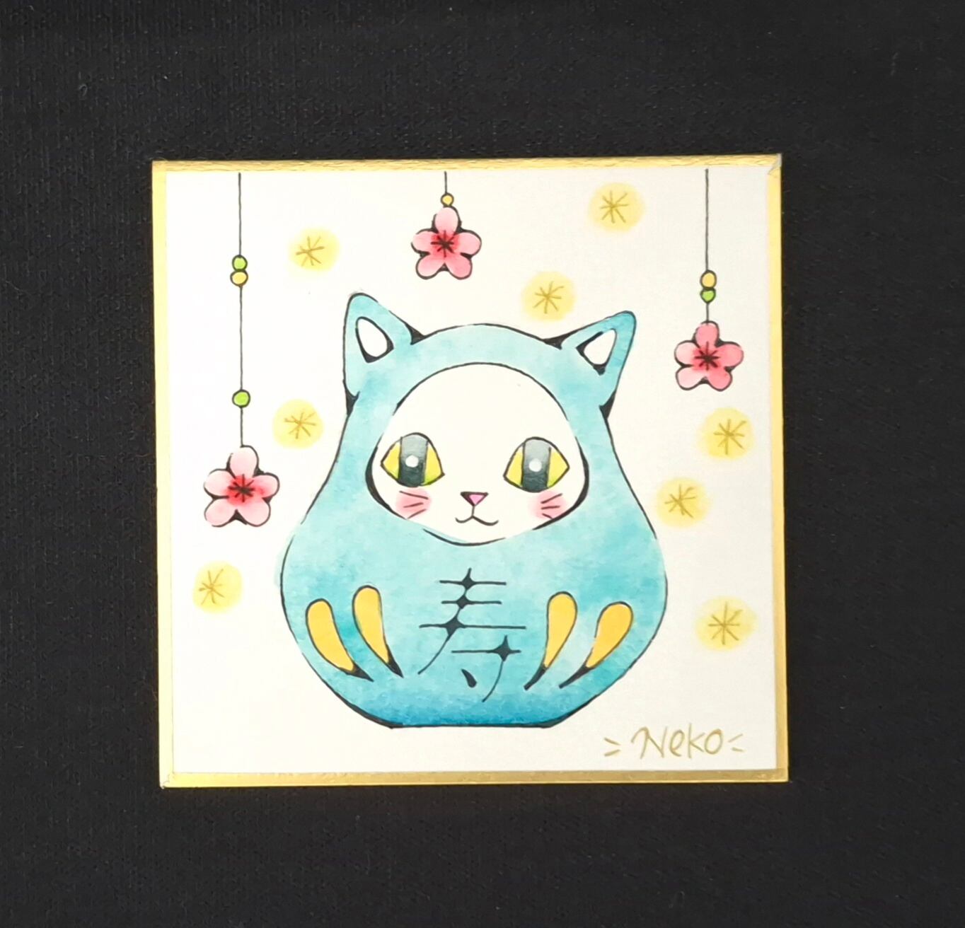 7.5×7.5(cm)のミニ色紙にペンと水彩で描いた一点ものの原画です。
