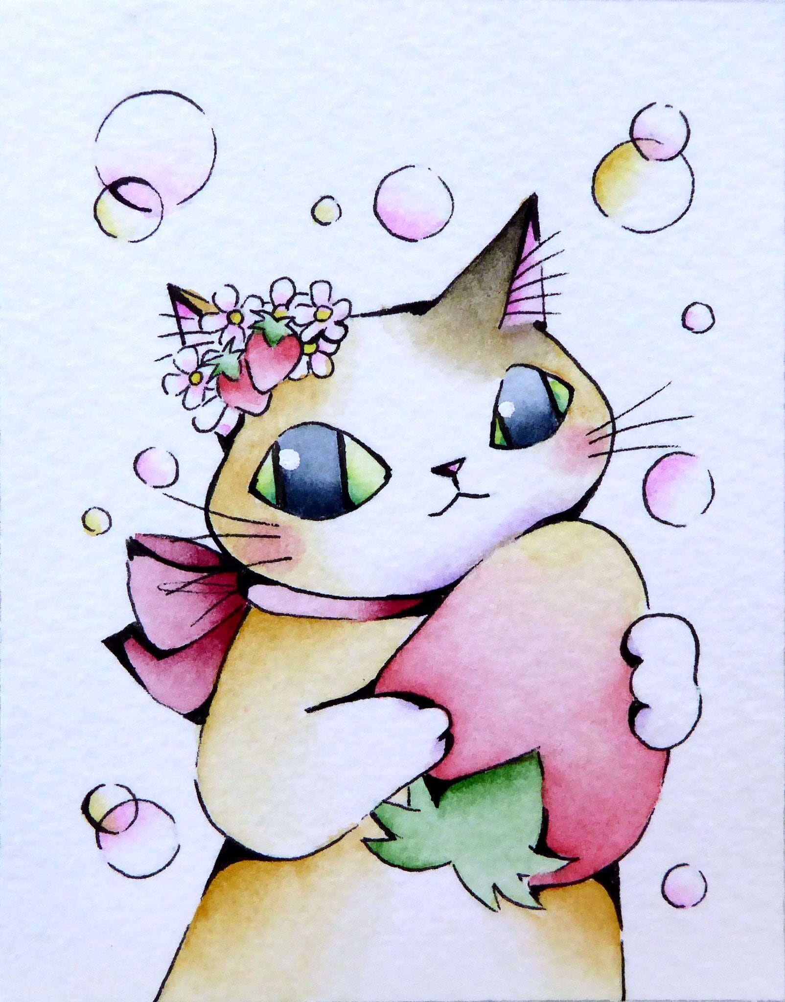 水彩紙にペンと透明水彩で描いた一点ものの原画です。