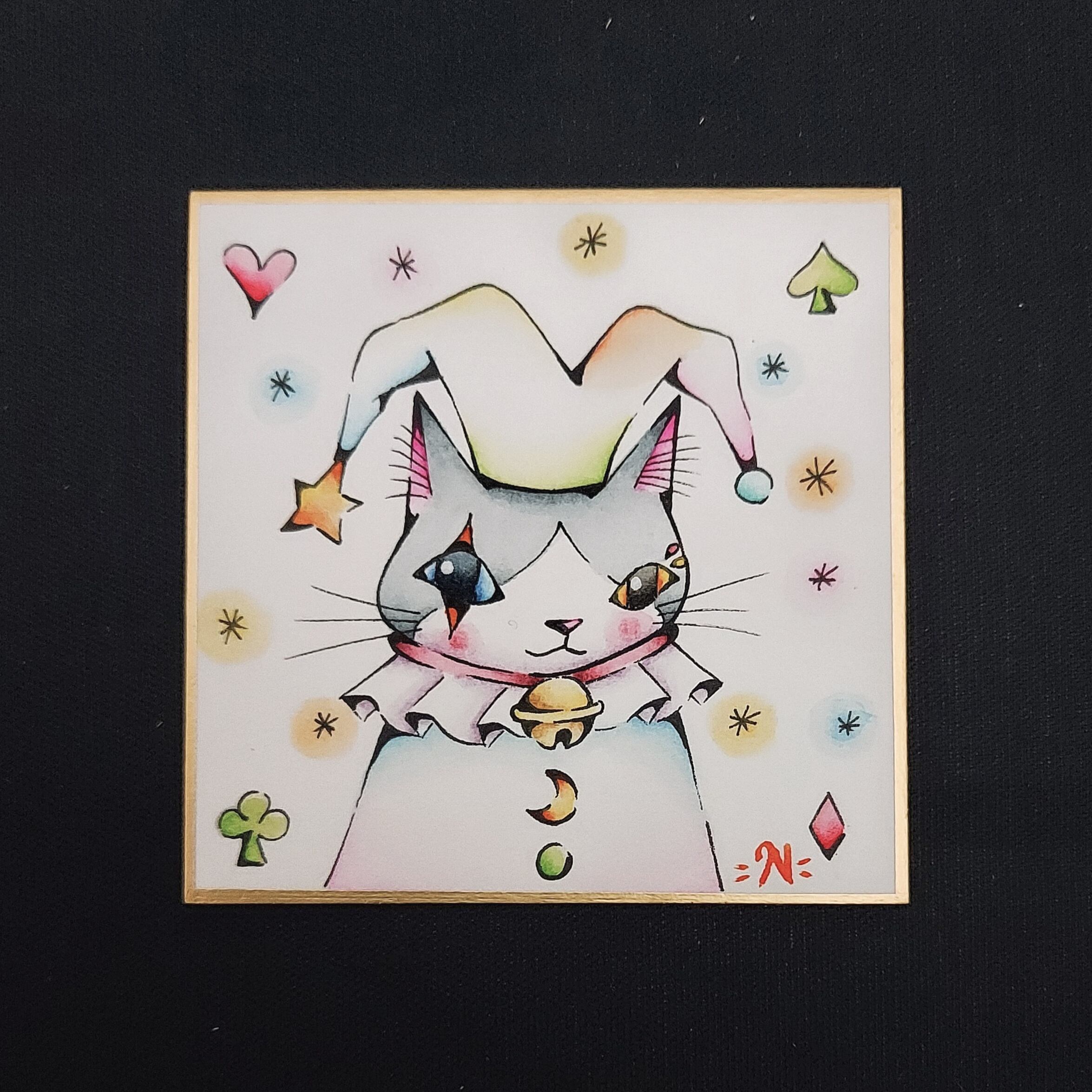 7.5×7.5(cm)のミニ色紙にペンと水彩で描いた一点ものの原画です。
